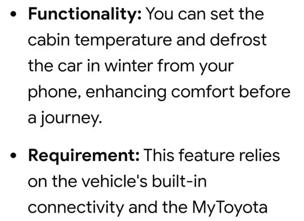 I know 2023 was the transitional model year; is yours a Gen1 or the new Gen2 design? I am not really familiar with the earlier model, but my 24 Gen2 C-HR Gr Sport does provide remote climate control using the app, as the Gen1 should as well. Refer to the screenshot below, albeit its applicability is contingent upon the availability of vertical features in your vehicle. Does your app indicate that you possess the newest version, 2.20.0?