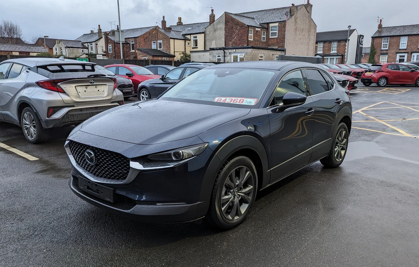 Greetings, everyone. Due to the difficulty of getting in and out of my old 4th generation Mazda 3 hatchback, I decided to get a 2023 Deep Blue Crystal e-SkyActiv X CX-30 GT Sport, which is more convenient for me. The colour of my Mazda 3 was Soul Red, however I believe that the Deep Blue colour is more suitable for the CX-30. Observed below while still at the dealership.