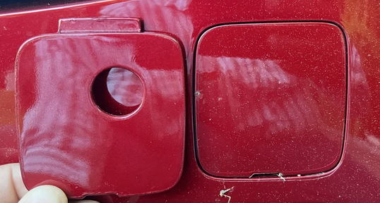 Has yours become detached? They are securely kept. It is difficult to determine from the photo, however if your colour has metallic flakes, the colour will not match unless you also have them mix a section around it.