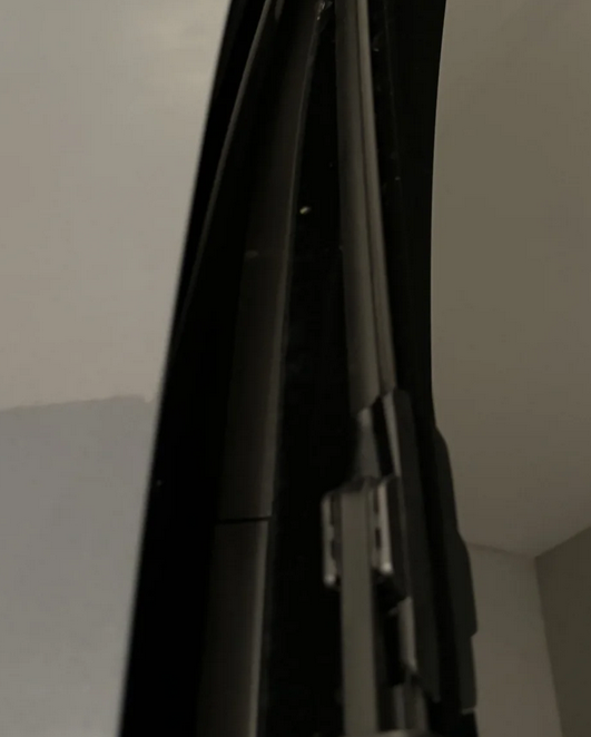 9. I concur. Here is a picture of mine when it is turned off. The driver's wiper blade comes quite close to touching the plastic trim located at the bottom of the windscreen. The picture provided by the original poster shows a far greater height.