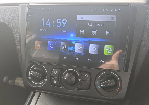 I have installed one of these, and I am certain that they can be integrated with the heating controls; all my steering wheel buttons, including reverse, function well. I also get a vehicle display including radar configurations while reversing; allow me to examine it and provide the URL.